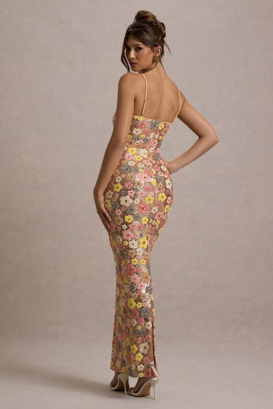 57% İndirimSELVIANA Payetli Çiçek Desenli Maxi Elbise