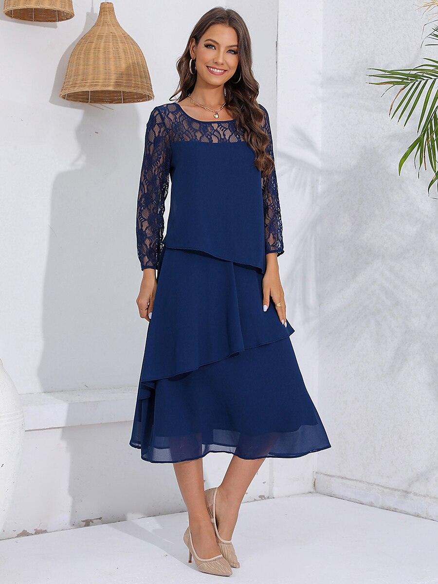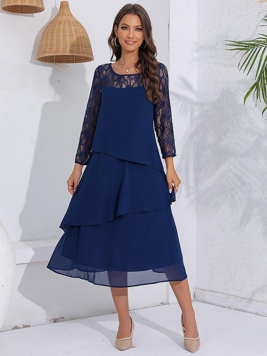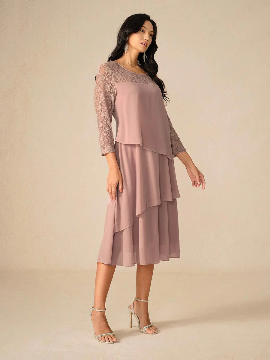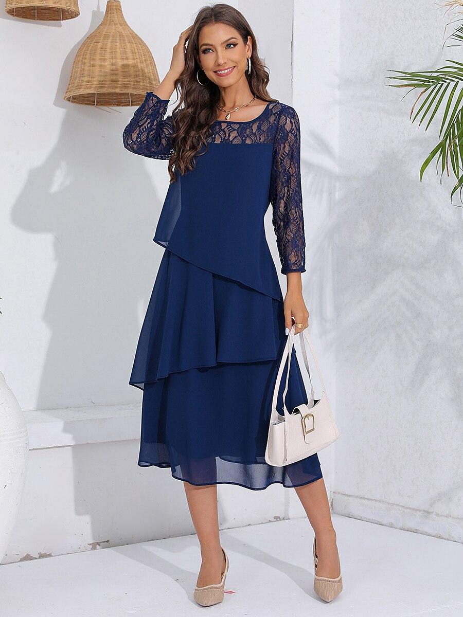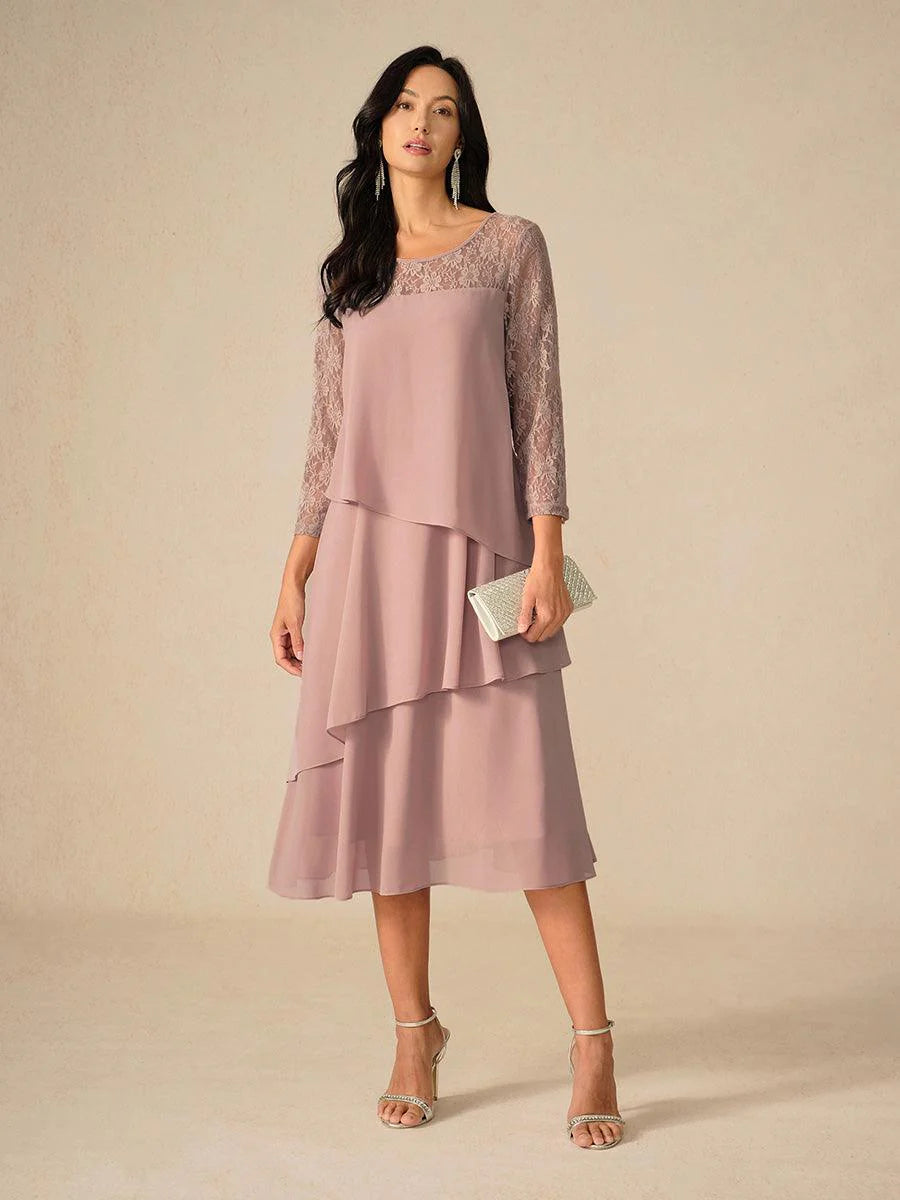 Katmanlı Dantel Detaylı Şifon Elbise