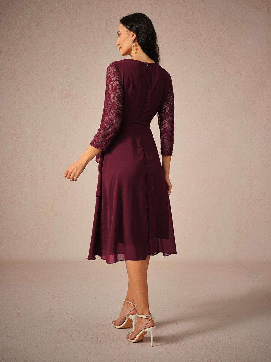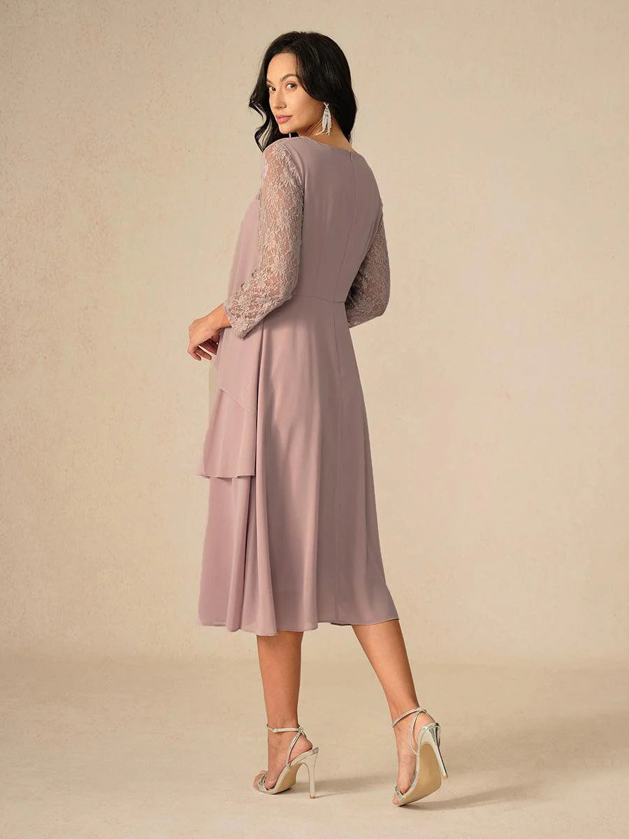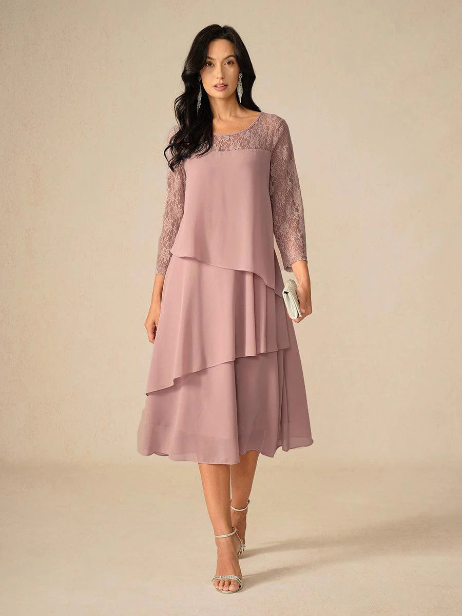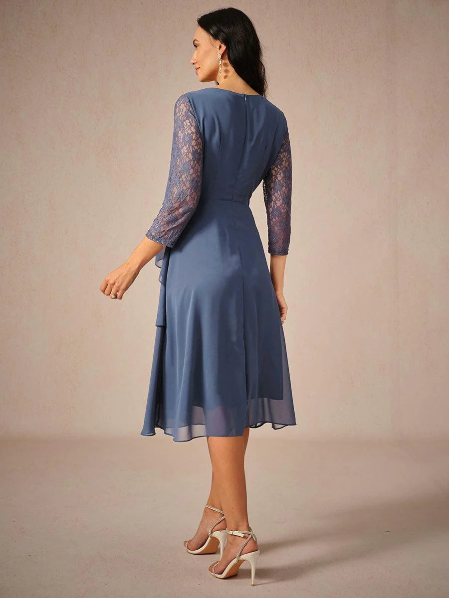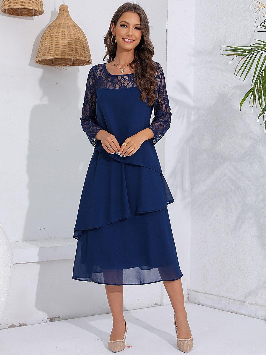 Katmanlı Dantel Detaylı Şifon Elbise