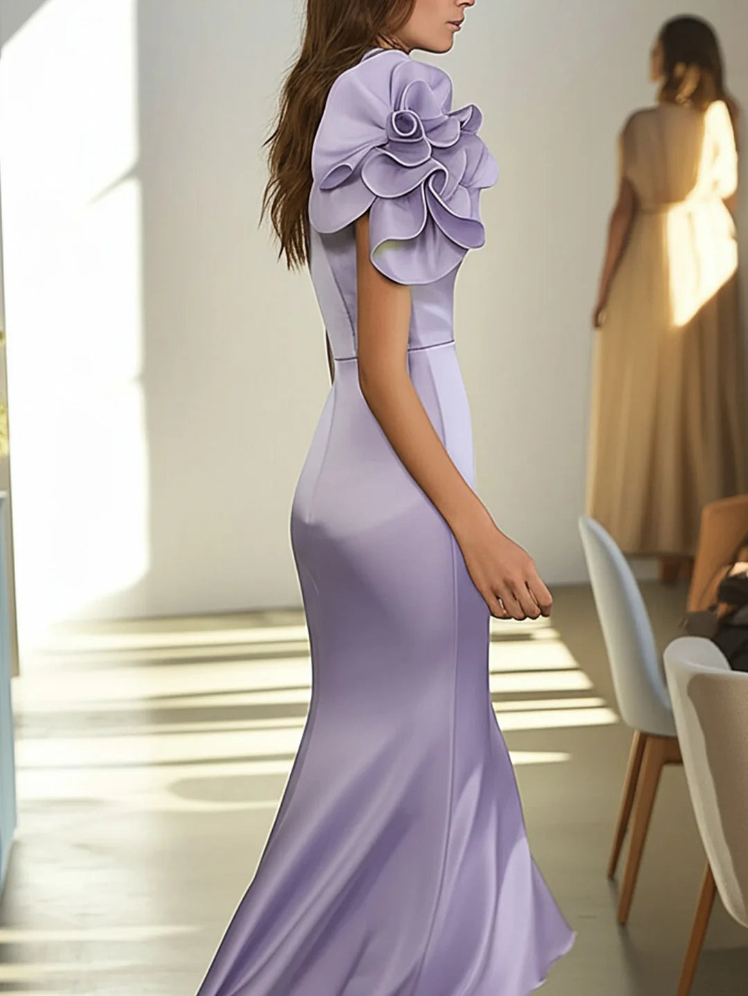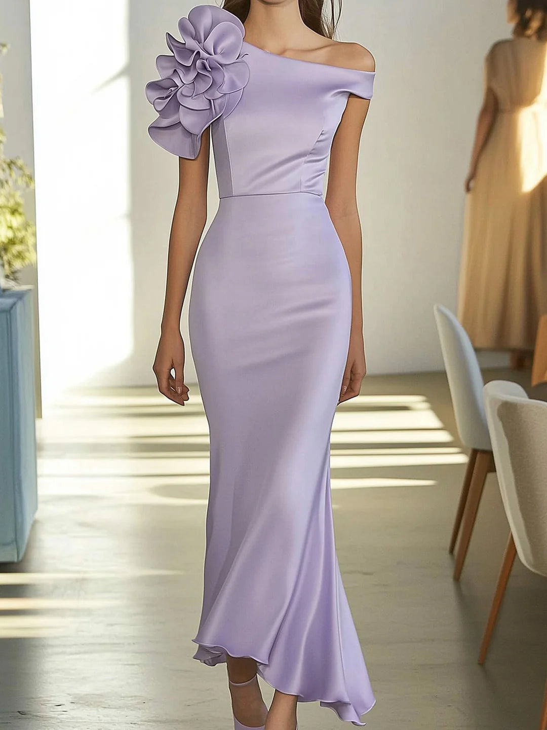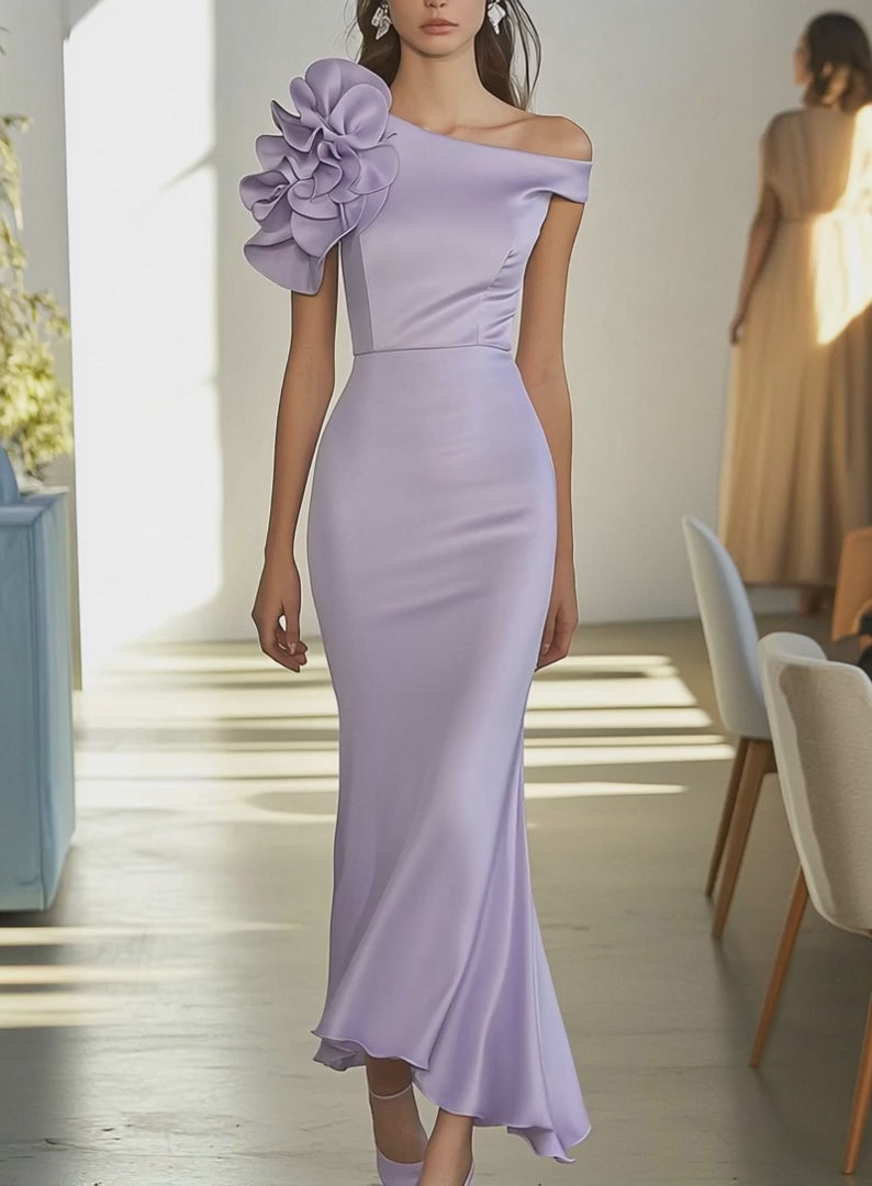 Modern çizgilerin zamansız güzellikle buluştuğu Asimetrik Çiçek Desenli Şık Tekne Yaka Elbise ile zahmetsizce şık bir izlenim yaratın.