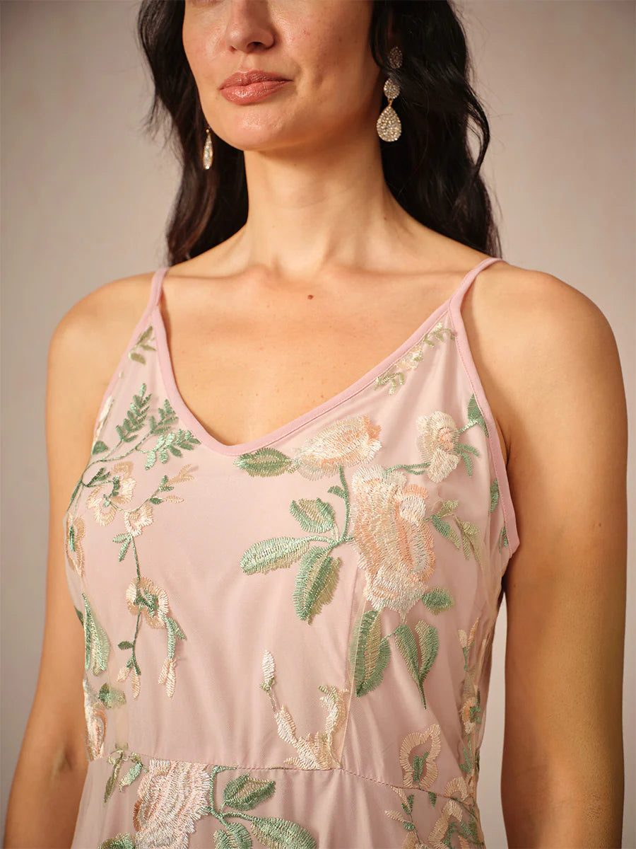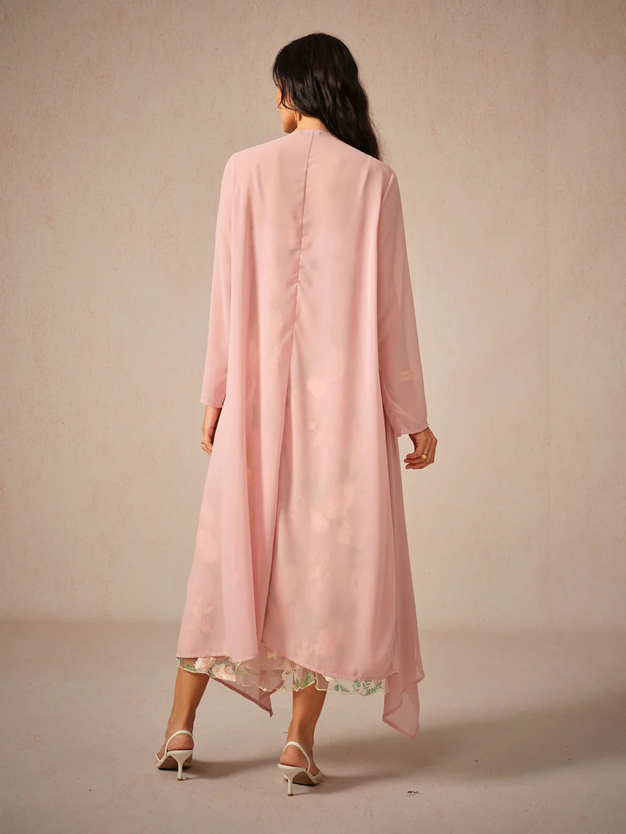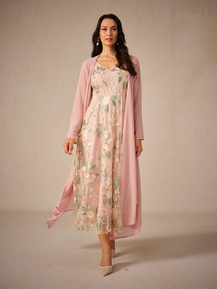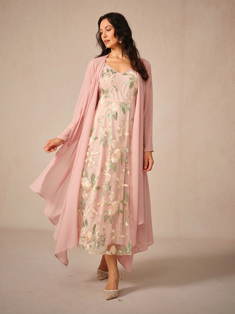 Bu şifon elbise seti, zarif nakış detayları ve V yaka kesimiyle öne çıkar. Maxi boyu ve regular fit kalıbı, tatil günlerinden akşam buluşmalarına kadar her durumda rahatlık ve şıklık sunar. İlkbahar ve sonbahar gardırobunuza sofistike bir dokunuş katacak ideal bir tercih.