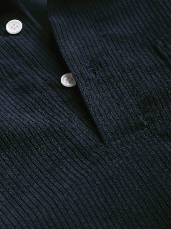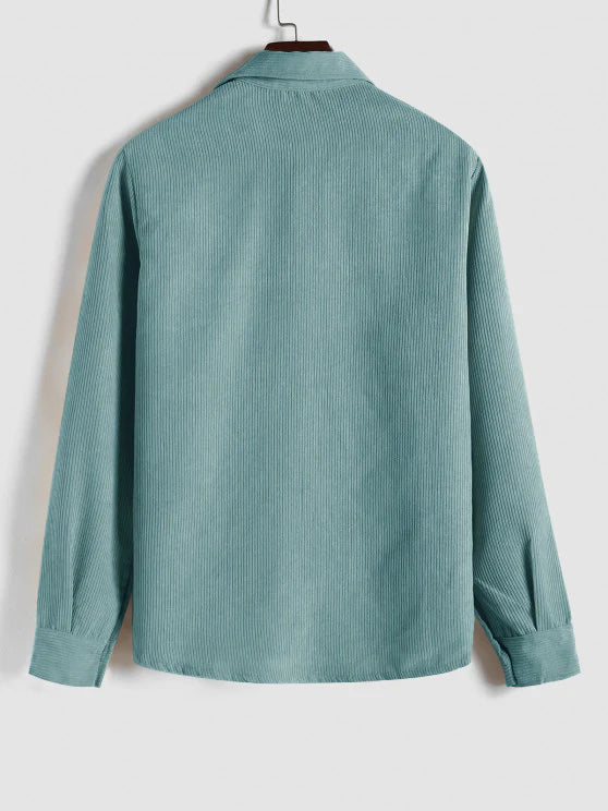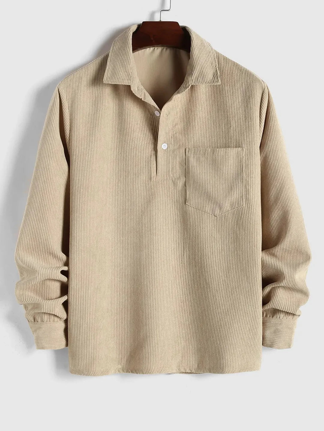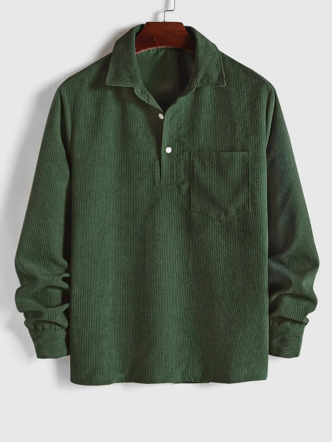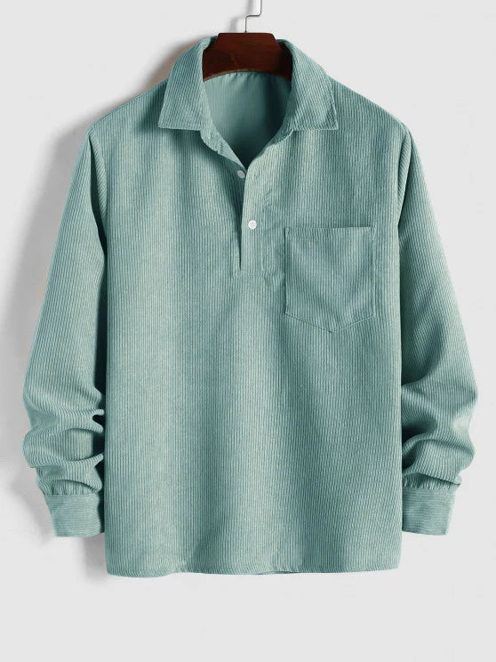 Erkekler İçin Yarım Düğmeli Kadife Kollu Gömlek